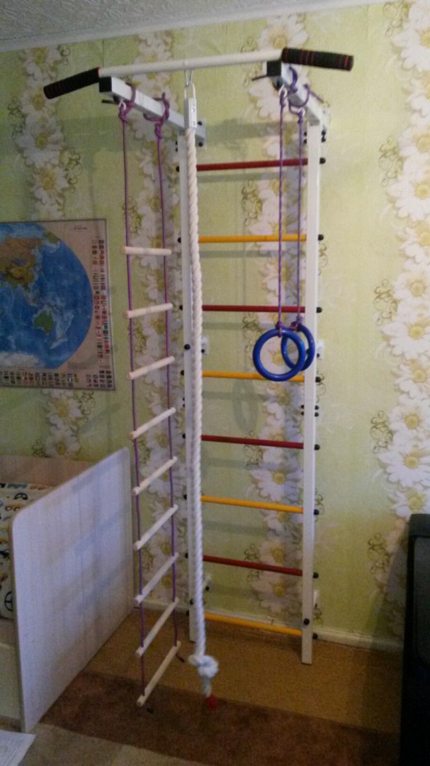- для детей вешать лестницу, кольца