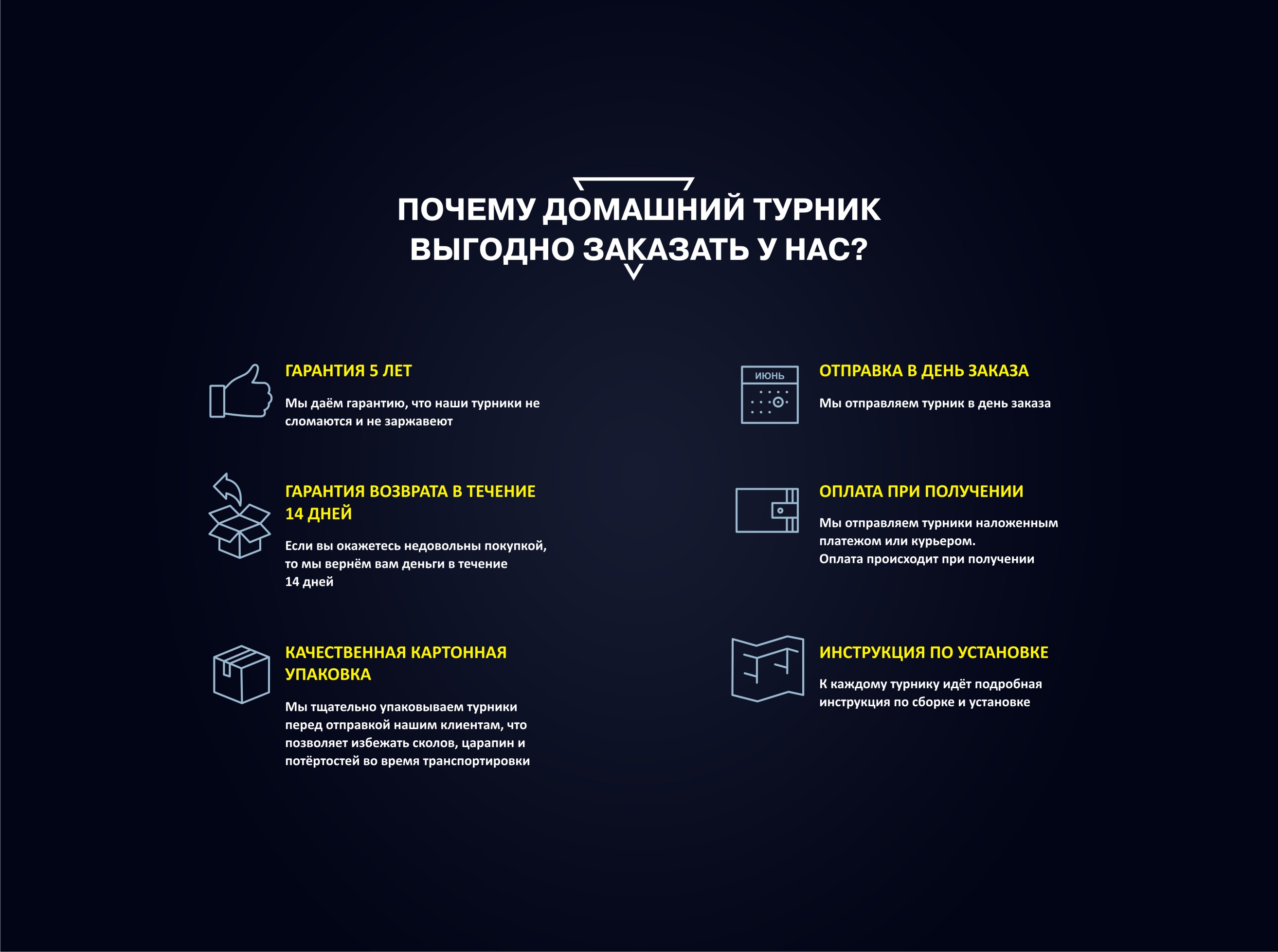 На наши турники действует гарантия 5 лет! Мы реализовали уже более 5500 турников и не получили ни одного возврата.