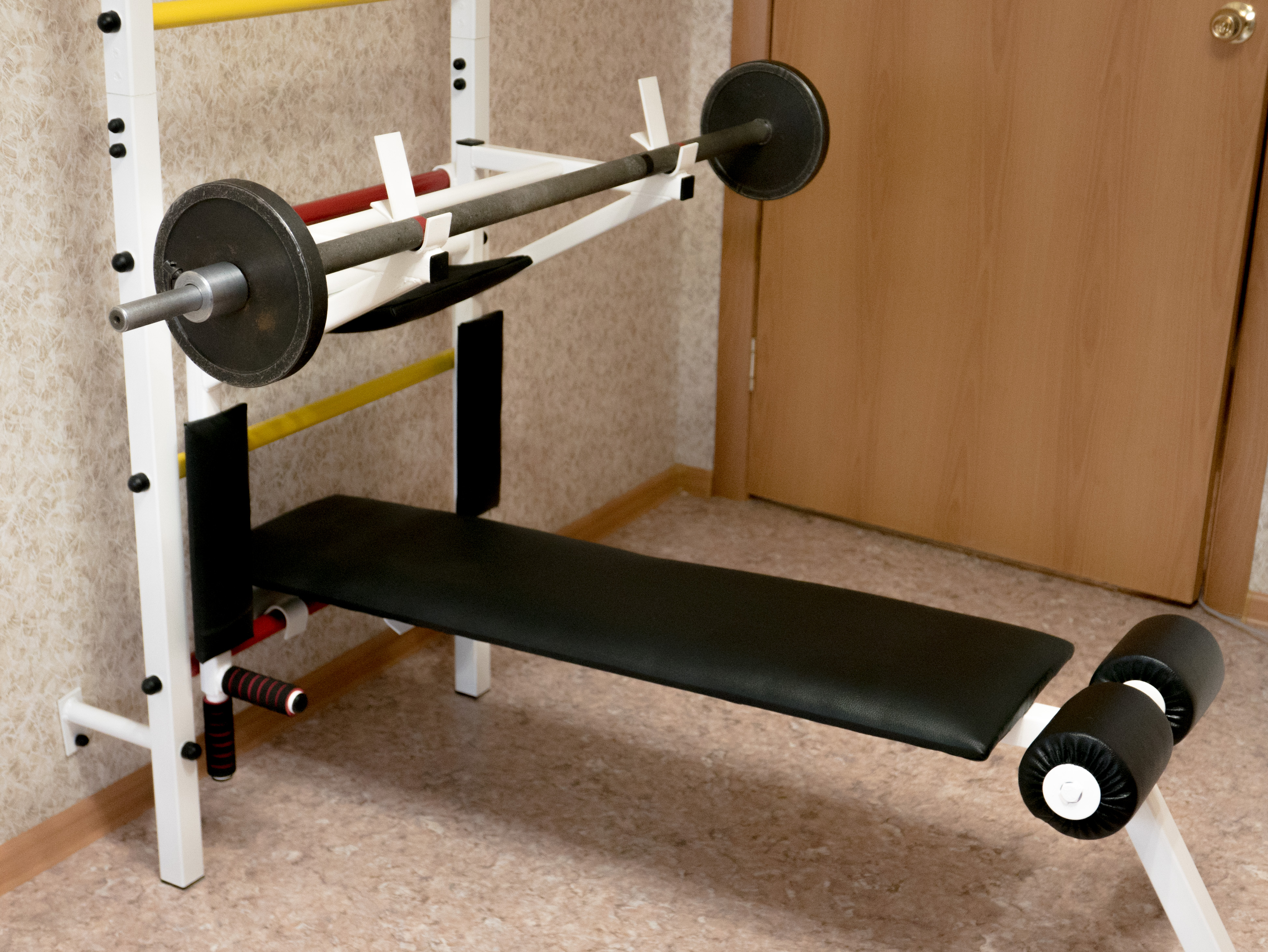Все части комплекса съемные и очень просто регулируются по высоте. Например, меняя наклон скамьи можно поэтапно увеличивать нагрузку на мышцы пресса.